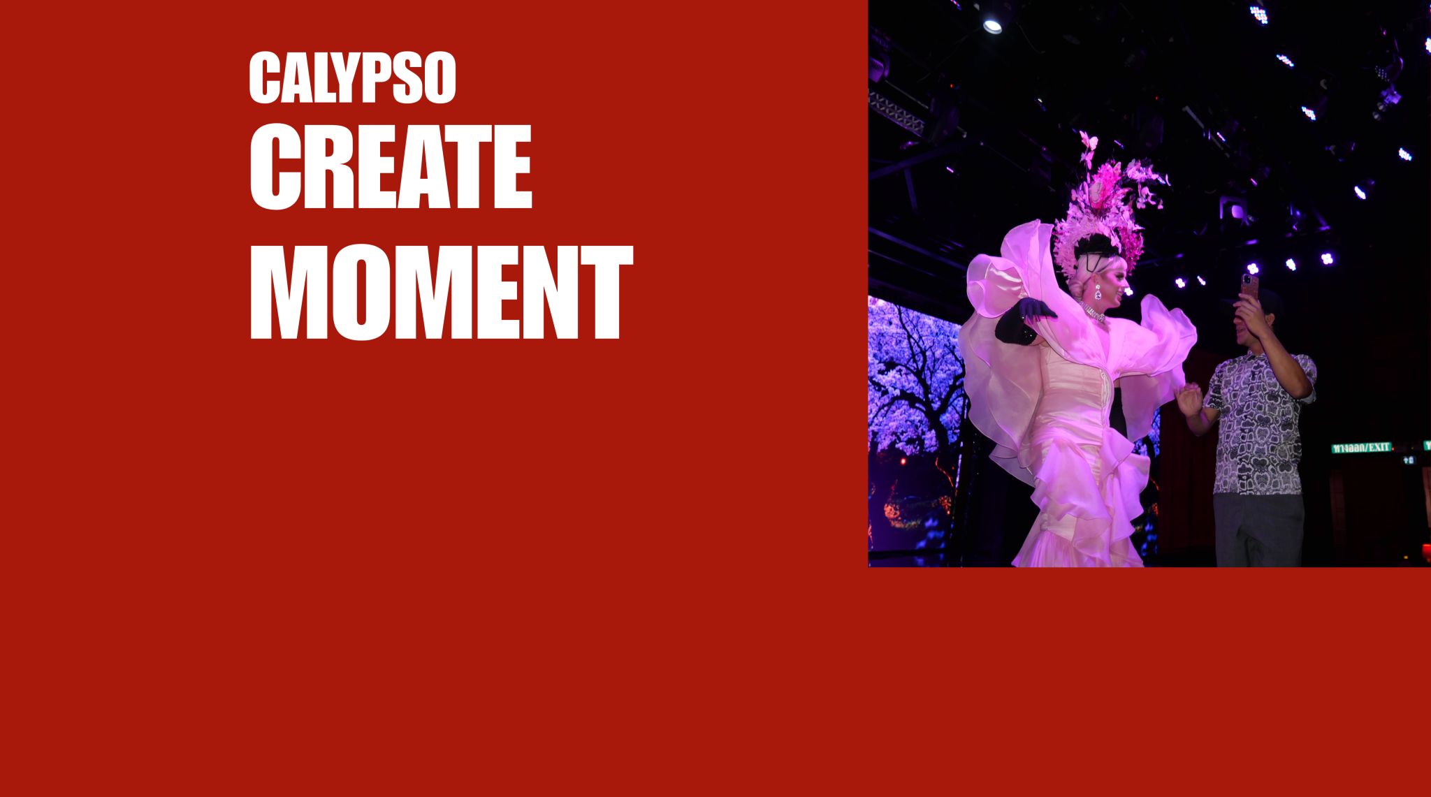 Dress in our cabaret costumes, enjoy professional makeup & hairstyling,and capture your moment on our full LED stage just like a Calypso star.